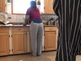 Amateur video of an Asian maid at an Asian style house with a big ass