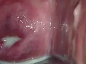 Intense close-up of a hot pussy receiving a cumshot