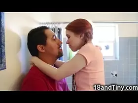 Small-titted teen gets her butthole stretched by Carolina Sweets big cock