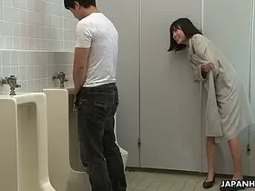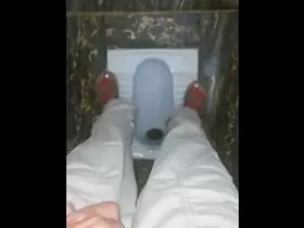 Peeing in a public toilet