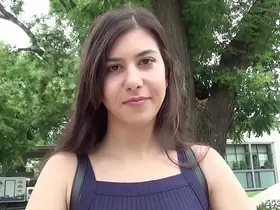 18-year-old German teen with small breasts gets picked up and has sex in casting