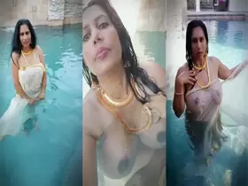Horny Desi bhabhi sucks and squeezes boobs in xxx pool video
