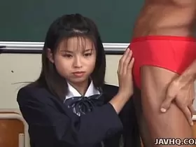Uncensored video of Japanese teen giving her teacher an intense blowjob