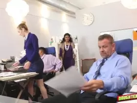 Old men take turns fucking blonde secretary in a wild gangbang