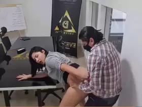 Teacher and employee engage in office sex with boss lady and pussy licking